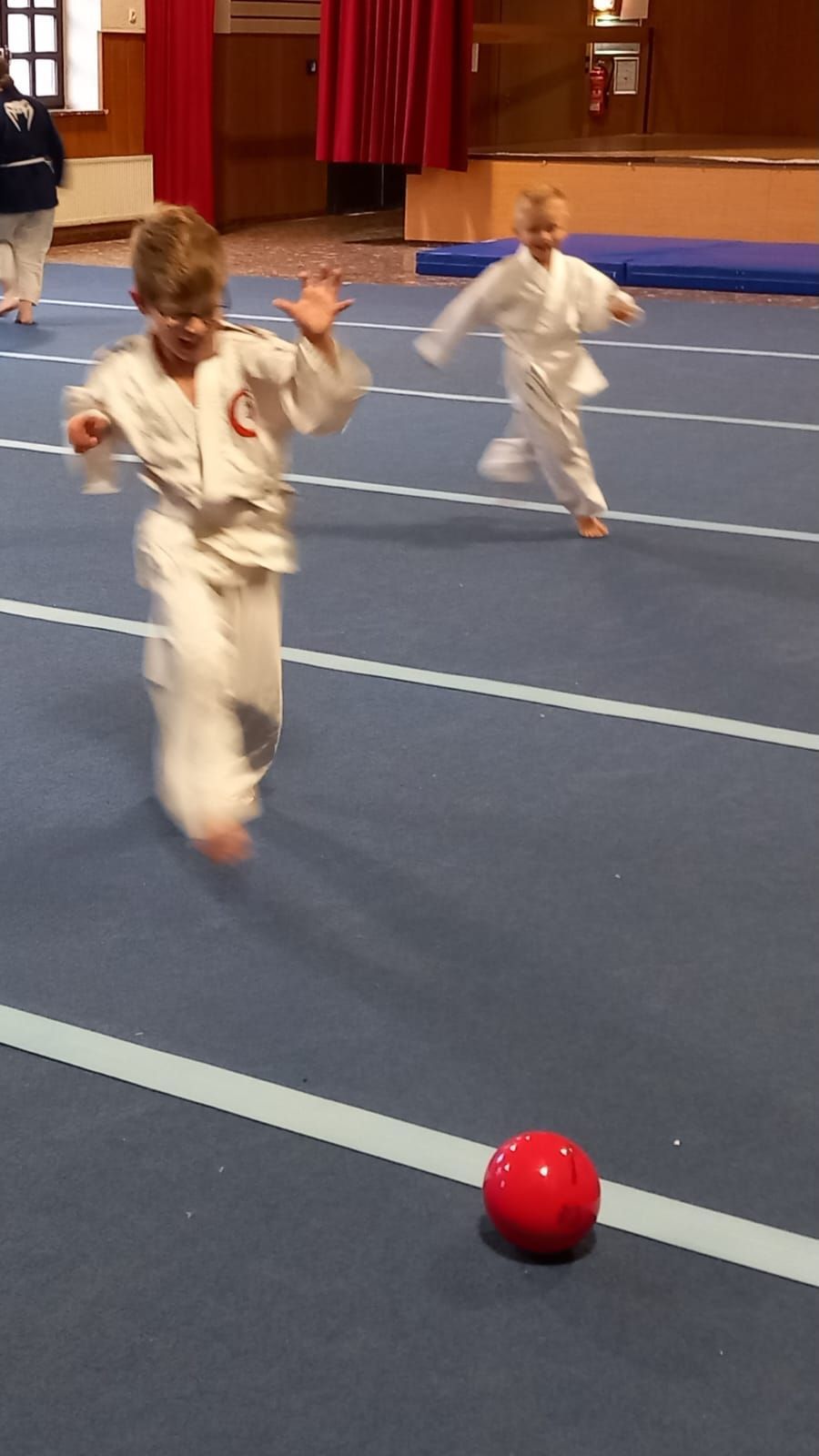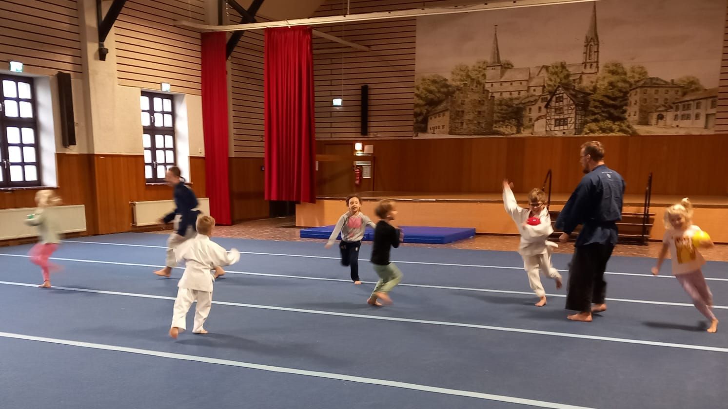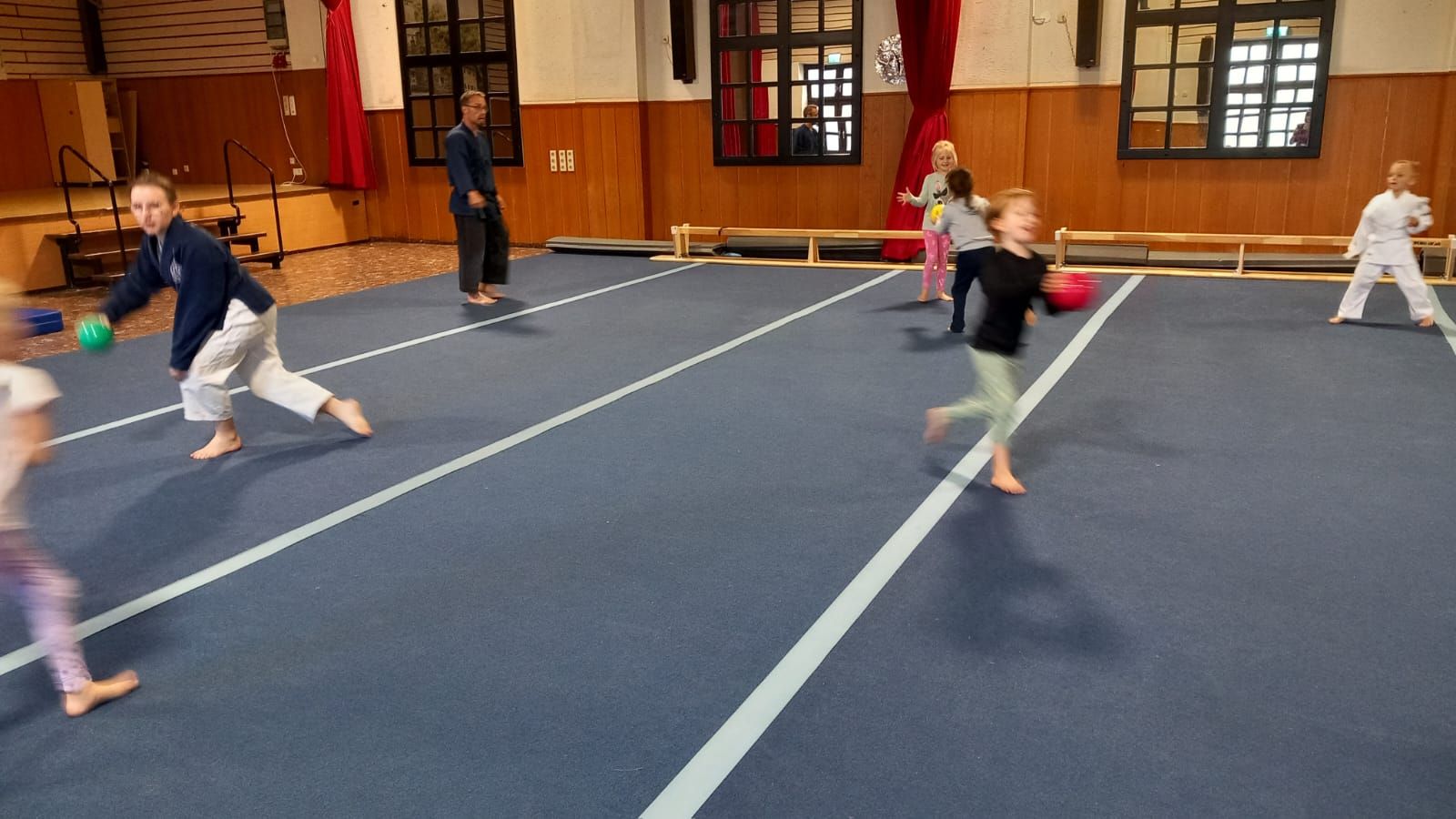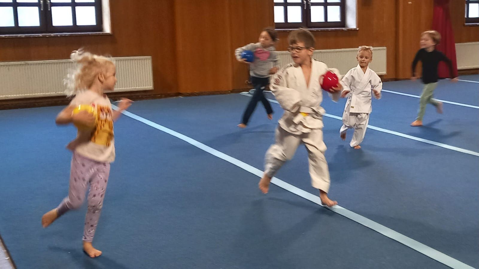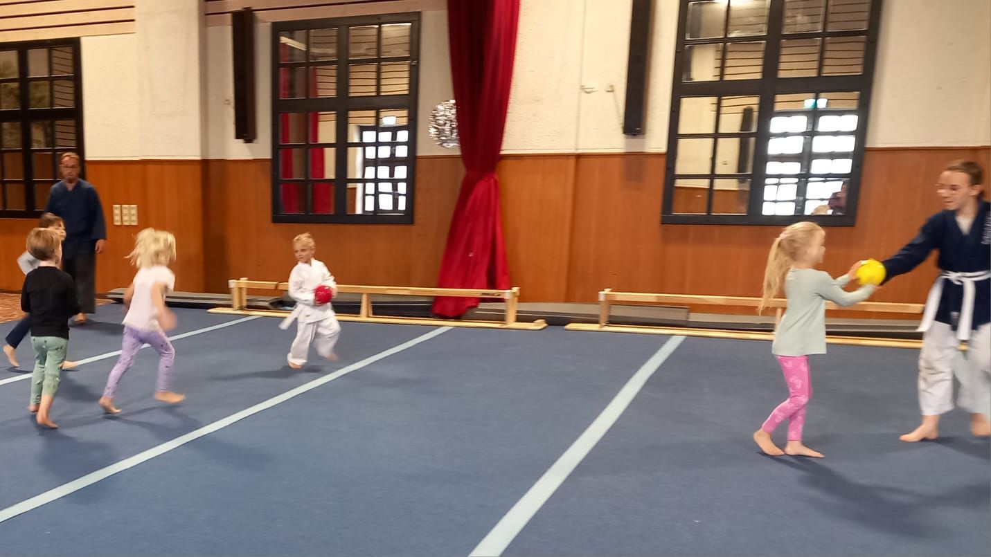 Heute bot das Aiki-Training den Kindern im Alter von 5 bis 7 Jahren jede Menge Spaß und Bewegung. Das Motto der Stunde waren Bälle, und die Kinder hatten die Gelegenheit, sich auf vielfältige Weise mit diesen zu beschäftigen. Das Programm umfasste verschiedene Aktivitäten wie Ball-Laufübungen, Ball-Übergaben, Werfen und Fangen sowie Ball-Rollen und spannende Ball-Kämpfe.