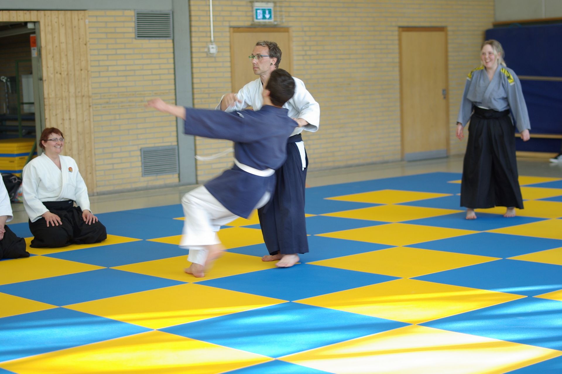 Der wahre Höhepunkt des Seminars war jedoch die Dan-Prüfung. Unter der Leitung von Shihan Bodo Muri nahm die Prüfkommission, bestehend aus Josef Jürgens, Heidrun Hoffman (beide Aikido Dojo Alpen) und Uwe Hasenbein, Platz. Es war eine anspruchsvolle und hochspannende Prüfung, bei der sich die Teilnehmer mit ihrer Technik, ihrem Wissen und ihrer Hingabe unter Beweis stellten.
