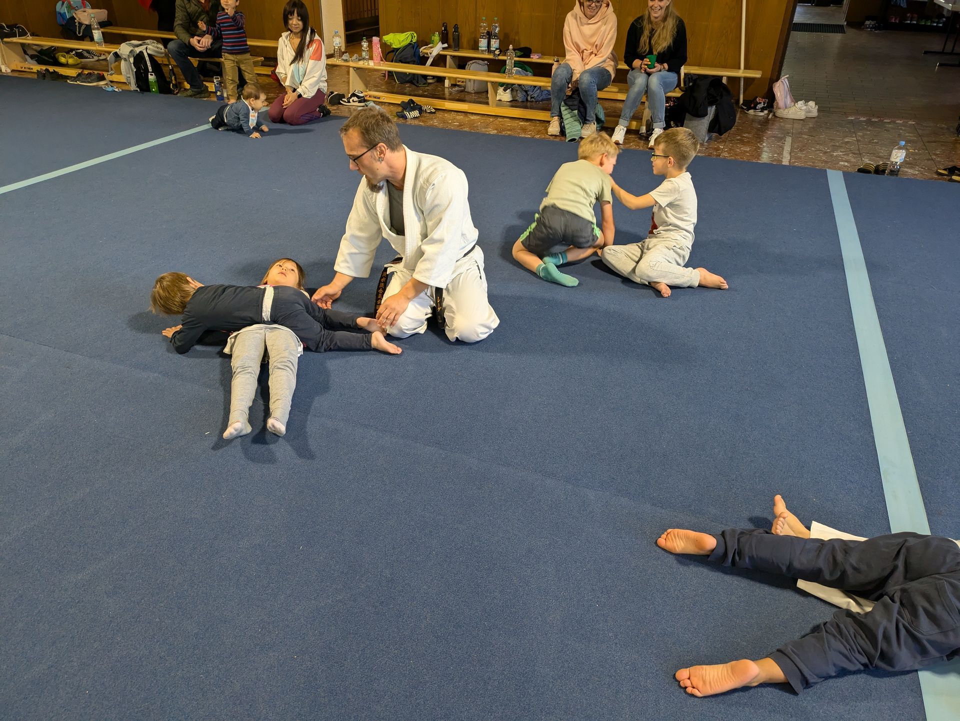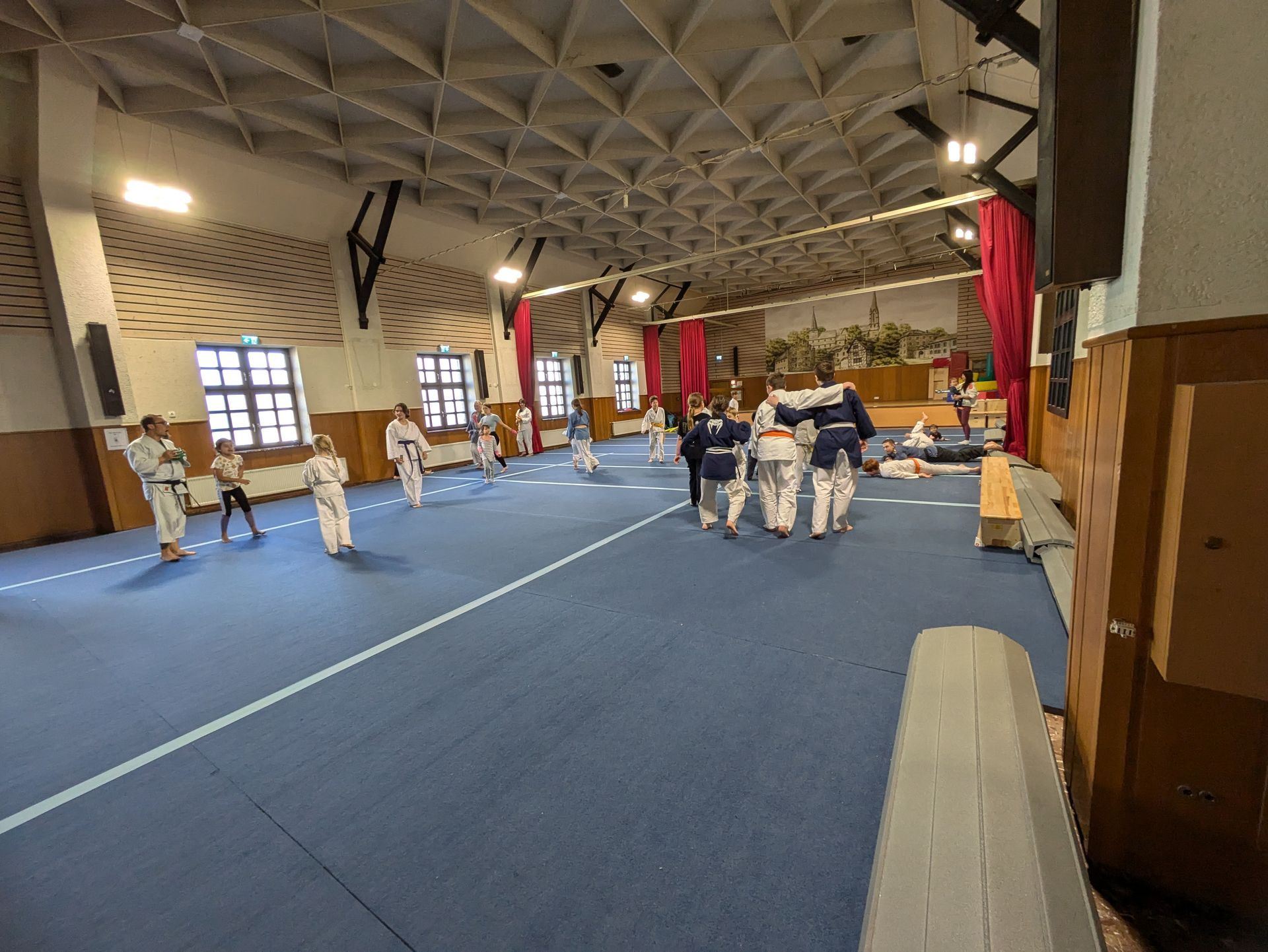 Für das leibliche Wohl sorgte ein reich gedecktes Mitbringbuffet, das mit den leckersten Köstlichkeiten aufwartete. Auf der Matte hatte unser engagiertes Trainerteam ein abwechslungsreiches Programm vorbereitet. Die Kinder konnten sich auf Aiki-Spiele mit Layla, Aikibudo mit Jessie, Kickboxen mit Abby (unterstützt von Tobi) und Aikido mit Volker freuen. Die Halle war erfüllt von Lachen und der Begeisterung der Teilnehmer, die sich voller Eifer auf die verschiedenen Einheiten stürzten.